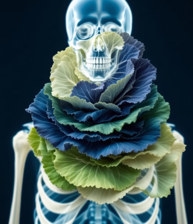 양배추에는 뼈 건강에 중요한 비타민 K와 칼슘이 풍부하여 골밀도를 유지하고 골다공증 예방에 도움을 줍니다.