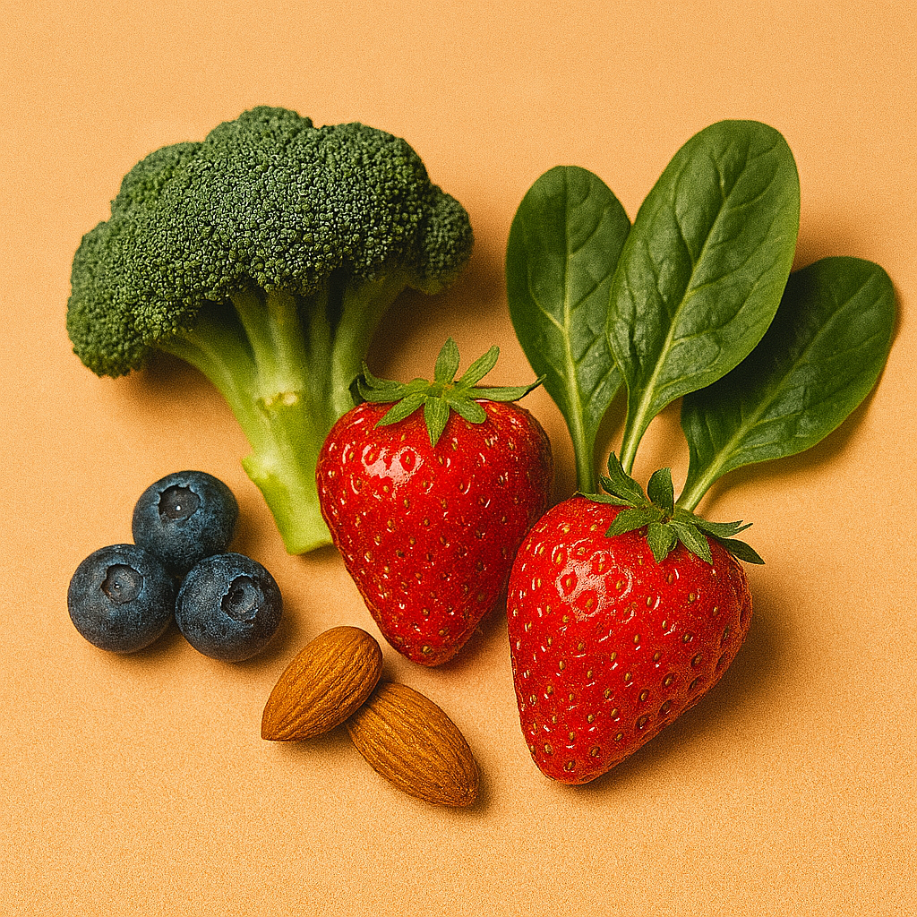 블루베리, 라즈베리, 브로콜리, 시금치 등은 항산화 성분이 풍부하여 피부 손상을 줄이고 염증을 완화하는 데 도움을 줍니다. 하루 한 끼는 꼭 신선한 채소와 과일로 구성된 샐러드를 챙겨 드셔보세요.